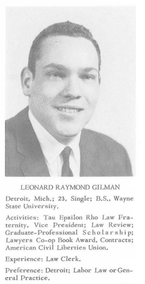 Gilman was also a graduate of Wayne State University Law School, Class of 1966, so he was there when Jane Kerr, Laurence Burgess and Ed Sosnick were attending.